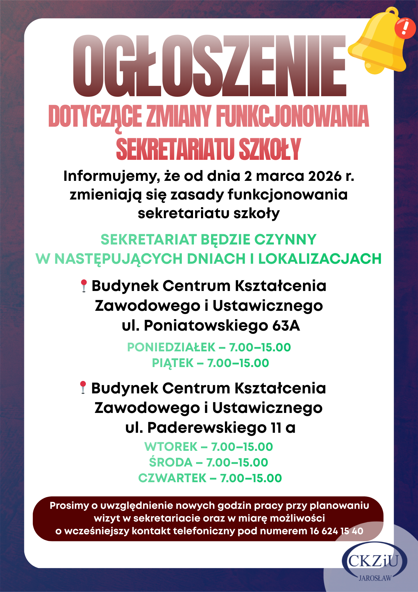 Centrum Kształcenia Zawodowego i Ustawicznego w Jarosławiu, ul. Poniatowskiego 63A, 37-500 Jarosław